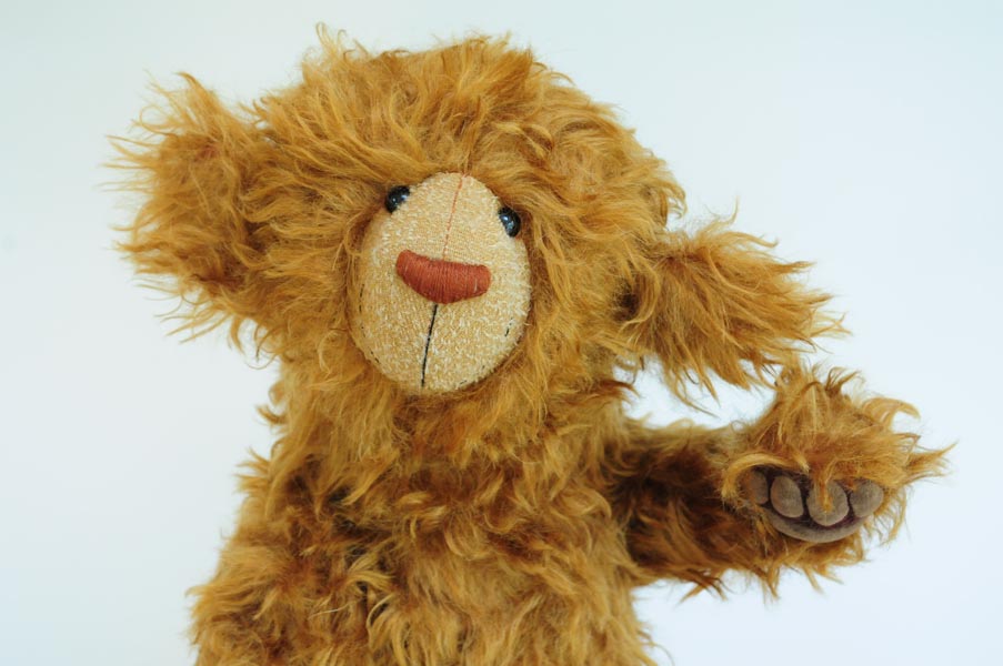 This is Darth, made from a lovely, tousled, ginger mohair, with painted, trapunto paw pads!